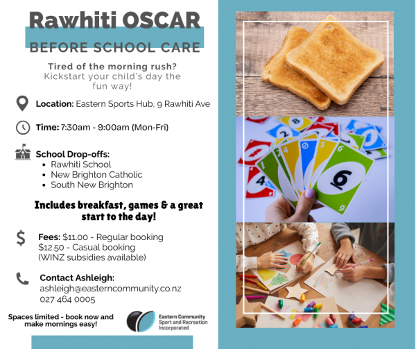 Rāwhiti OSCAR offers before and after school care to working parents in the Greater New Brighton area